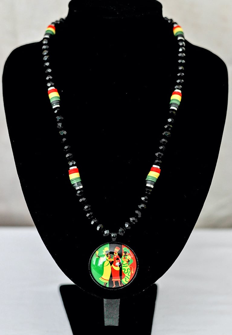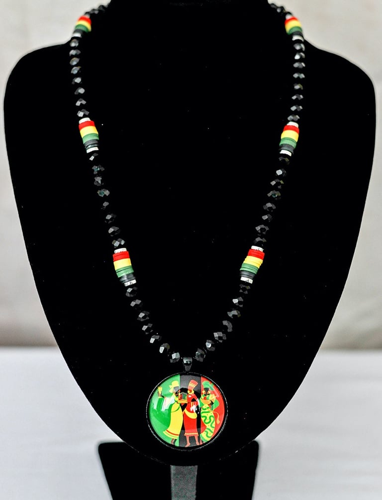 Rondelle Bead Kwanzaa Pendant Necklace