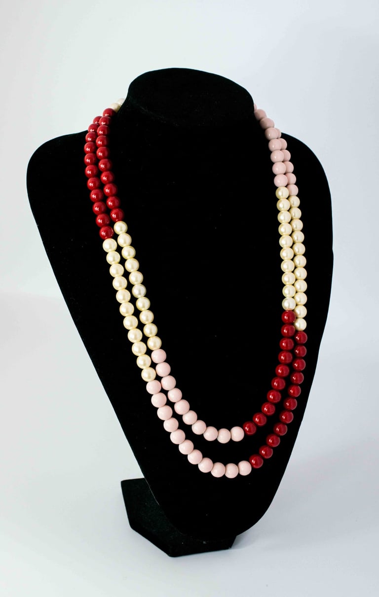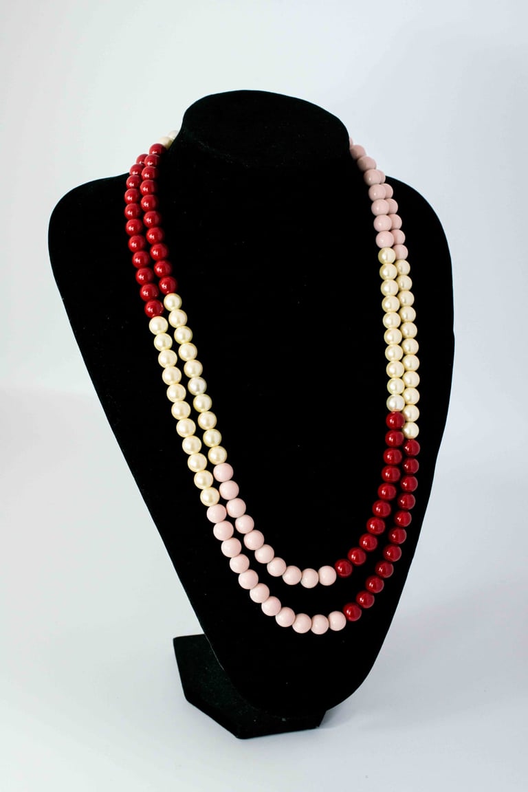 Multicoloured pearl double strand necklace